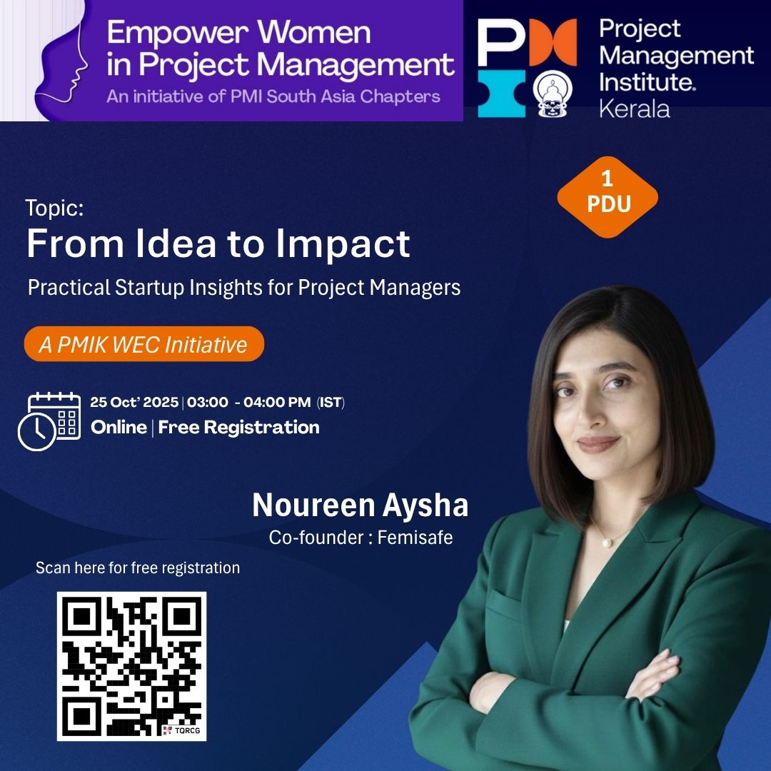 PMI Kerala chapter Women engagement committee is hosting a Entrepreneurship Awareness Session. This session will be handled by Noureen Aysha, Co-founder : Femisafe