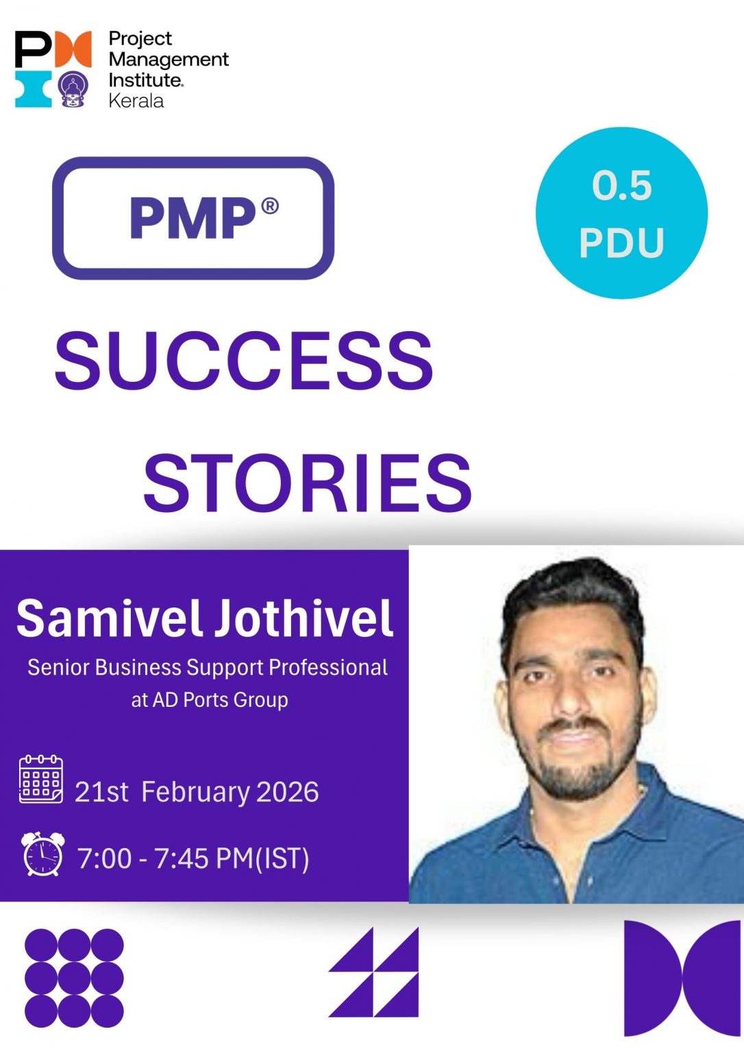Join us for an engaging talk with Mr Samivel Jothivel, PMP®, Senior Business Support Professional at AD Ports Group, recently achieved his PMP certification and will be sharing his preparation journey, study strategies, exam insights, and practical tips to help aspiring PMPs approach the certification with clarity and confidence.